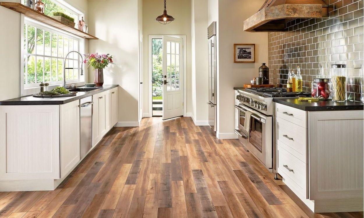 دانستن این نکته لازم است که شما نیازی نیست حتما رنگ کفپوش و وسایل آشپزخانه را دقیقا در یک رنگ انتخاب کنید. بلکه توصیه ما این است که شما از رنگهایی متفاوت برای کنار هم بودن استفاده کنید. به نظر ما شما تنها زمانی میتوانید از یک رنگ برای کفپوش چوبی و وسایل آشپزخانه خود استفاده کنید که بخواهید یک فرش را برای مکان استفاده کنید؛ زیرا که شما با انتخاب یک فرش میتوانید یک رنگ بودن آن دو را کنار هم تلافی کنید. اگر میخواهید فضایی را ایجاد کنید که در آن از رنگهای شاد و زیبا استفاده شده و این رنگ ها در کنار هم قرار گرفته باشند، میتوانید از کفپوشهای لمینیت با طرح چوب درخت بلوط و یا چوب و یا گردو استفاده کنید. انتخاب این چوبها بسیار انتخاب مناسبی است.