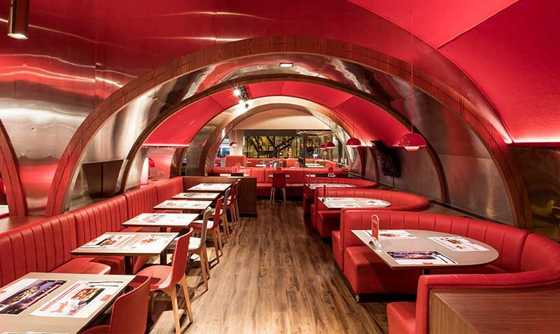 سفید ومشکی از جمله رنگهایی هستند که بسیار در فضاسازی غذا خوری استفاده میشوند. هارمونی ترکیب رنگهای زیر نیز نقش معجزهآسایی در جذب مشتری دارد:
