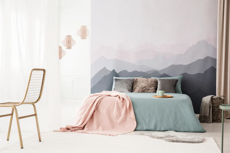 در اتاق خواب، دیوار پشت تخت خواب را جدا از دیوارها، باید کاغذ دیواری زد و آن را با تمامی وسایل مربوط به تخت هماهنگ کرد. انتخاب رنگ ست روتختی با کاغذ دیواری پشت تخت خواب بسیار مهم است و به اتاق یکپارچگی و هماهنگی را میدهد. شما میتوانید با انتخاب درست کاغذ دیواری از دو نمونه و یا دو رنگ استفاده کنید و فضایی لوکس را به اتاق خواب ببخشید.