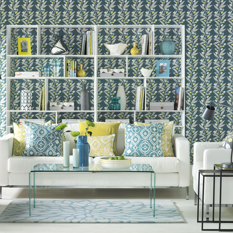 در استفاده از کاغذ دیواری برای نشیمن نیز باید دقت زیادی کرد. فضای نشیمن یک فضای مهم است که شما بیشتر اوقاتتان را در آن سپری میکنید. پس بهتر است از رنگ و طرح روشن برای نشیمن استفاده کنید. استفاده از رنگ روشن مثل سفید و یا طیفهای رنگی خنثی، منزل شما را نورانیتر نشان داده و راحتتر ست میشود. برای نشیمن بهتر است که یک دیوار فقط برای کاغذ دیواری استفاده شود و برای باقی دیوارها میتوانید از رنگهای متناسب و هماهنگ با مبلمان خود استفاده کنید.